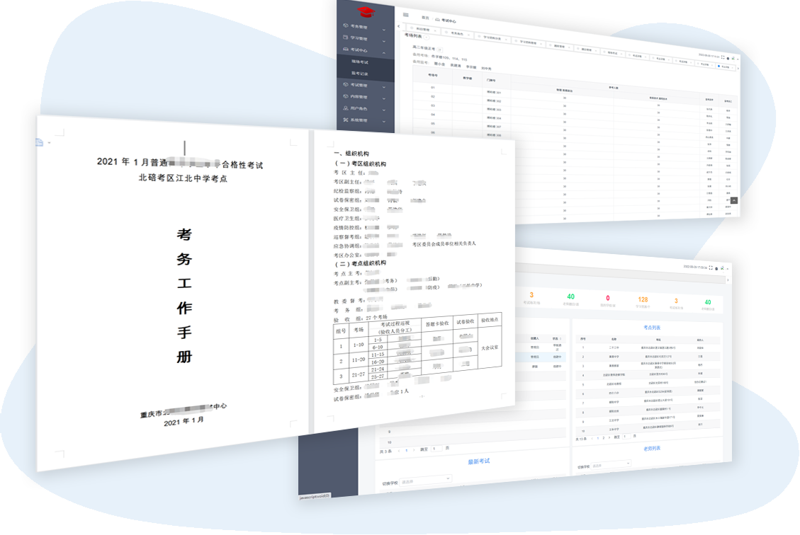 - 快捷的考場生成和安排功能,可幫助考式中心、考點快速安排考場和監(jiān)考老師。